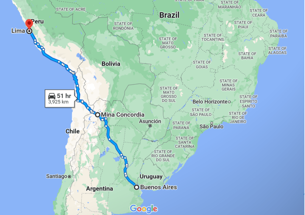 Coincidentally, Mina Concordia is along the route that Trevithick would have taken towards Lima, although Bateson’s final destination was a mere 1600km from Buenos Aires, barely halfway to Lima and still a difficult journey 66 years after Trevithick’s death.