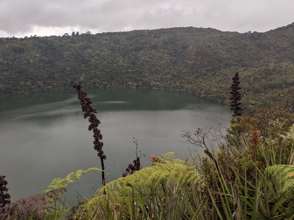 I was exactly that: mesmerised. Standing tall, I peered down into the crater below, unsure how the surface of the lake remained perfectly still in the lashing rain. Maybe there was something magical about this place, specifically chosen by the Muisca people for their rituals. I was forcibly removed from my daze once the others in the group had grown tired of my refusal to budge. They wanted to take selfies and pose in front of the barrier, not appreciate their trip into the hills. Elbows gently dug into my side as a woman tried in vain to push the hooded figure of me in my raincoat of out her next Instagram post, but I wasn’t moving anytime soon. Clearly, I was encroaching on their clout territory and they made disapproving mutters and tuts as I made it plainly obvious I wasn’t going to move one inch. Being tall and slightly imposing has a use sometimes. Eventually they gave up and moved to another viewpoint further along the ridge, but I followed them soon after. Bollocks to your selfies, my quest is more important.